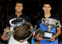 今回の決勝は、久々に世界ランク1位と2位の姿がない。第1シードの王者フェデラーを倒し、トップハーフを制したのはセルビアの若武者、第3シードのジョコビッチだ。そして第2シードのクレー王ナダルを屈服させ、ボトムハーフから勝ち上がったのはノーシードのツォンガと、いずれが勝ってもニューヒーロー誕生の瞬間を目にすることになる。